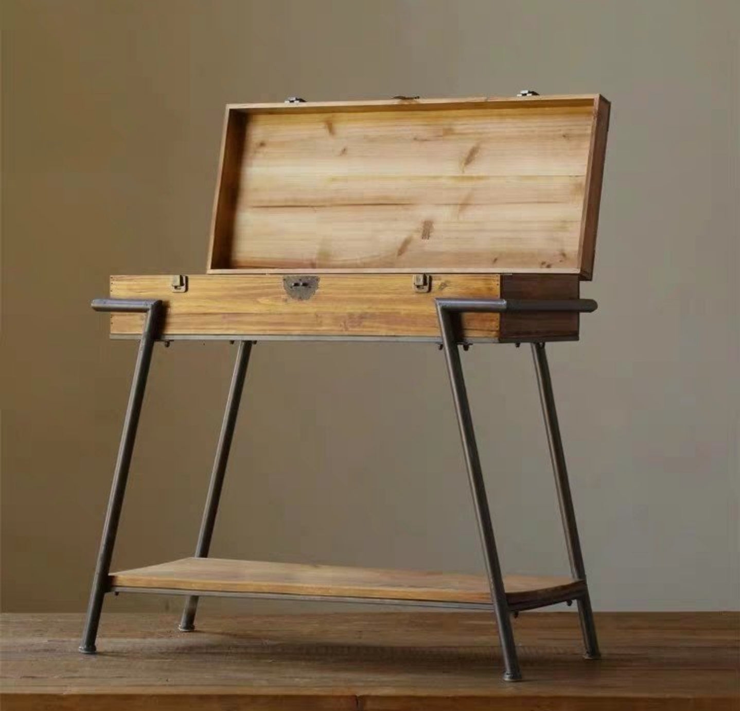 AMY is a hallway essential to match your vintage or rustic interiors, AMY is a flip top luggage storage crafted from reclaimed hard wood and sits a top slender powder coated iron legs. resistant to elements