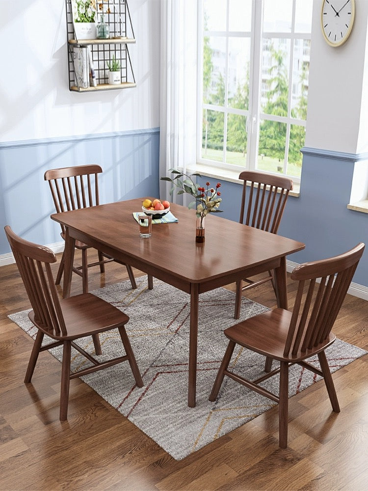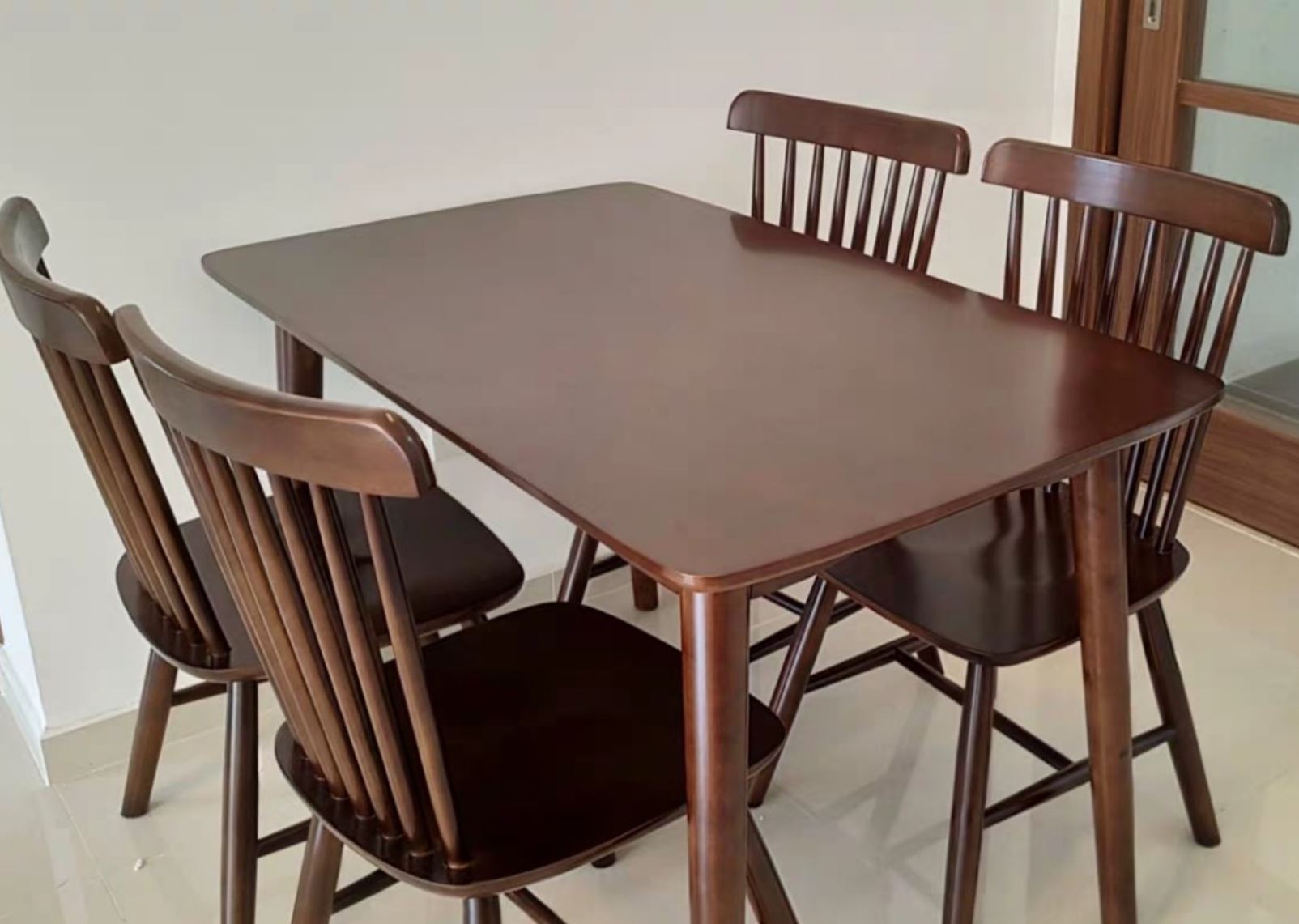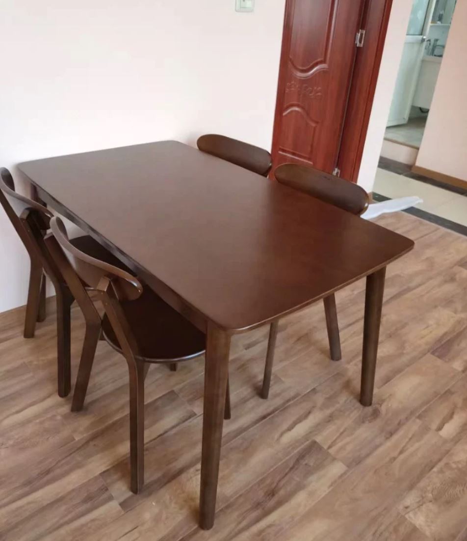 This beautiful finley dining table combines the style of both modern classic and rustic furniture. The table sits on four solid wood pine legs and has a more modern glossy dark walnut finish. The wood has a knotty and organic appeal to it, making it the perfect communal area for family, friends and guests. Give your dining area a much desired warm and glow. Can be use in sheltered backyard, balcony or varanda.