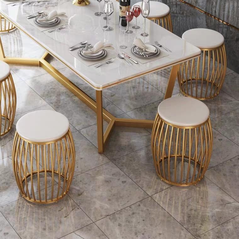 Featuring satin gold outlines which forms the basic bone structure of these drum stools, the Hadley accentuates mid modern and classic homes with its elegant design that goes beyond form and function. Maximize dining space area with these stools, use them as vanity chairs, or leave them along the entryway for guests to sit and chill.