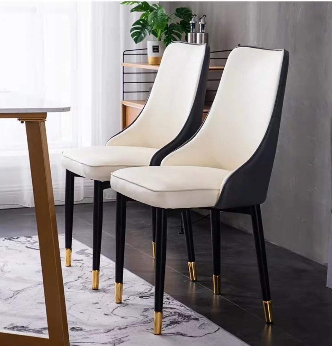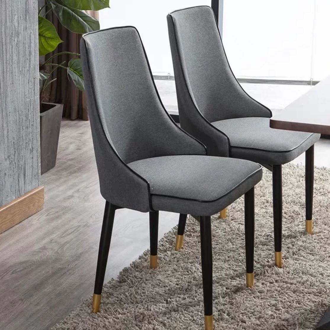The Sara chair showcases a curved back offer great back support and the streamlined armrests in warm charcoal gray linen, accented by gold capped legs. Choose your favourite colour combination to suit your modern, classic, retro or vintage interior design.